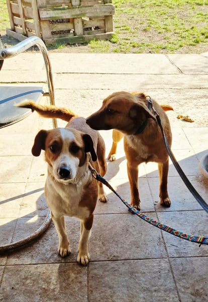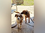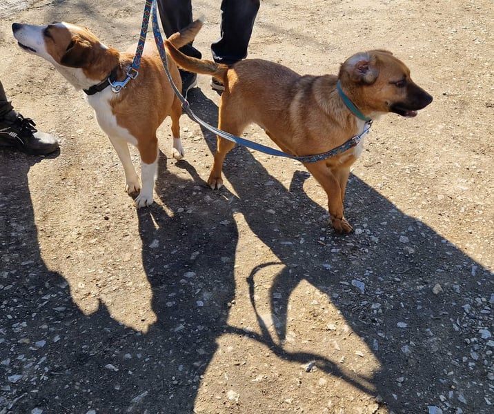 Die junge Hündin Kisbarna und ihre Mutter Lusti haben nach dem Tod ihres Besitzers ihr Zuhause verloren und warten nun auf einen liebevollen Neuanfang.