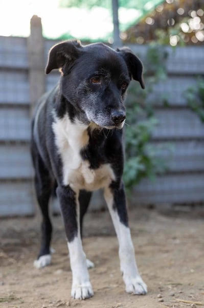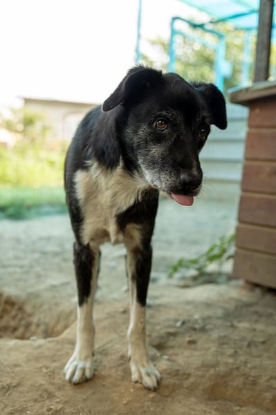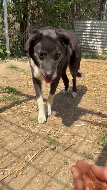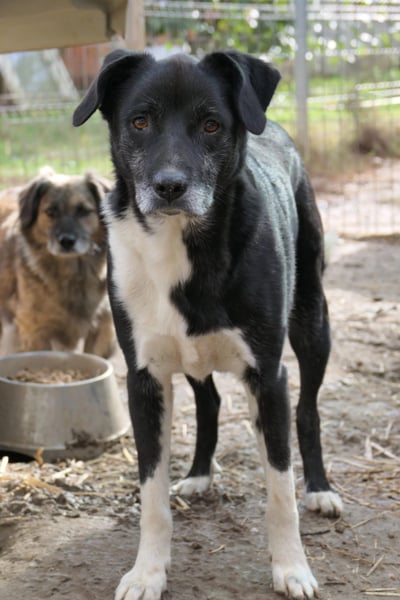 Negry wurde aus dem städtischen Tierheim gerettet. Bei uns zeigt er sich noch unsicher und bellt schon mal, wenn man an seinem Zwinger vorbeiläuft. Wenn Helfer:innen jedoch sein Gehege betreten, verstummt er und beobachtet den Neuankömmling neugierig. Bleibt man, kommt er interessiert näher. Sanft und vorsichtig nimmt er Essen aus der Hand, möchte aber noch nicht angefasst werden.
