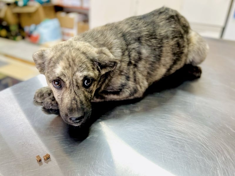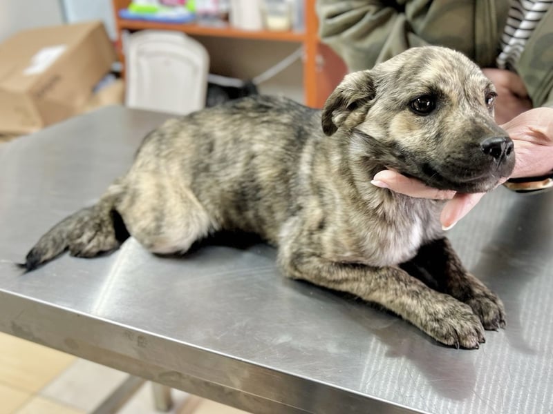 Der hübsche kleine Rüde mit seinem gestromten Fell zeigt sich derzeit aufgeschlossen. Neue Situationen lernt er neugierig kennen, taut schnell auf und zeigt seine liebe und sanfte Seite. Villi ist ein sehr süßer, freundlicher Welpe, der die Welt Schritt für Schritt zu entdecken beginnt.