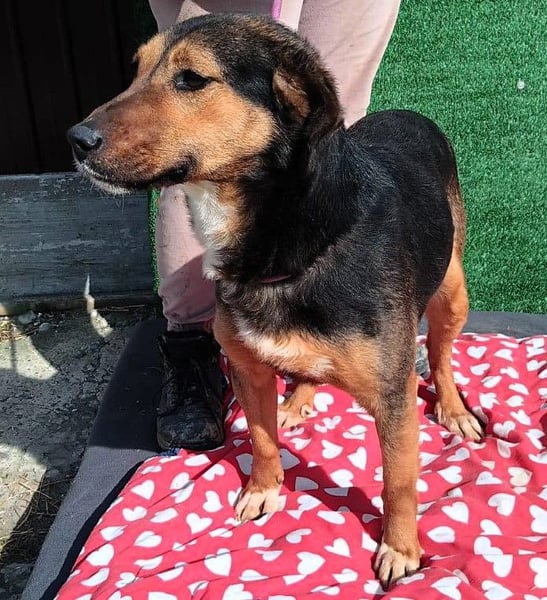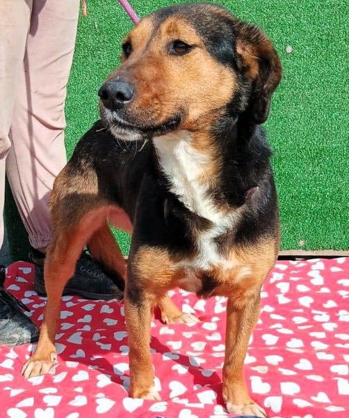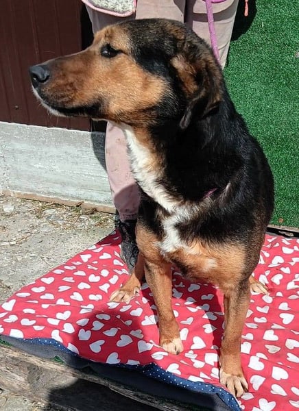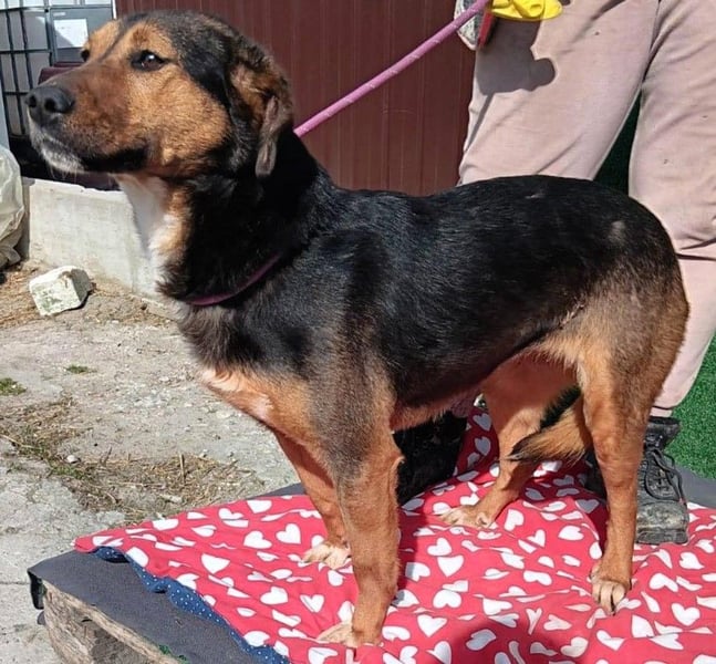 Hanni wurde ca. 2022 geboren, ist mittelgroß und hat ein Gewicht von ca. 24kg (alles geschätzte Angaben).