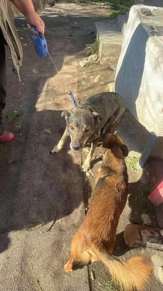 Ich bin eine verträgliche Hündin, gerade mal so um die 5 Jahre alt, wer weiß das schon so genau im Hundeleben eines Streuners. Ich übe nun fleißig, schon mal an der Leine zu laufen, verstehe mich mit den anderen Fellnasen gut, die hier nun mit mir wohnen.