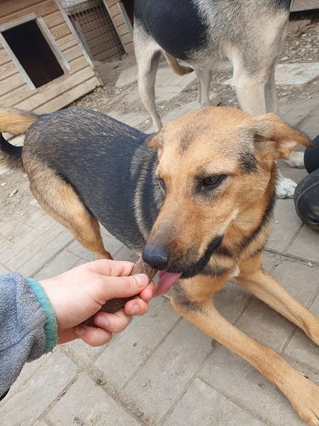 Malaika ist eine aufgedrehte, fröhliche Hündin mit viel Energie und noch mehr Charme. Sie begrüßte uns freundlich, wuselte mit den anderen Junghunden um uns herum und war sofort mittendrin statt nur dabei. Typisch für unsichere, junge Hunde überspielt sie ihre Nervosität mit viel Aktion: Sie war akrobatisch, quirlig, warf sich direkt auf den Rücken und genoss dann vorsichtig die ersten Streicheleinheiten. Obwohl ihr die Nähe zu Menschen noch etwas ungewohnt war, ließ sie sich problemlos berühren – man merkt ihr an, dass sie in einer sicheren Umgebung schnell Vertrauen fassen wird. Malaika ist eine sehr nette, liebenswerte Hündin, die Menschen sucht, die ihr ein stabiles Umfeld, klare Strukturen und liebevolle Begleitung bieten.