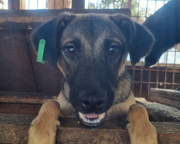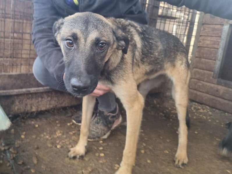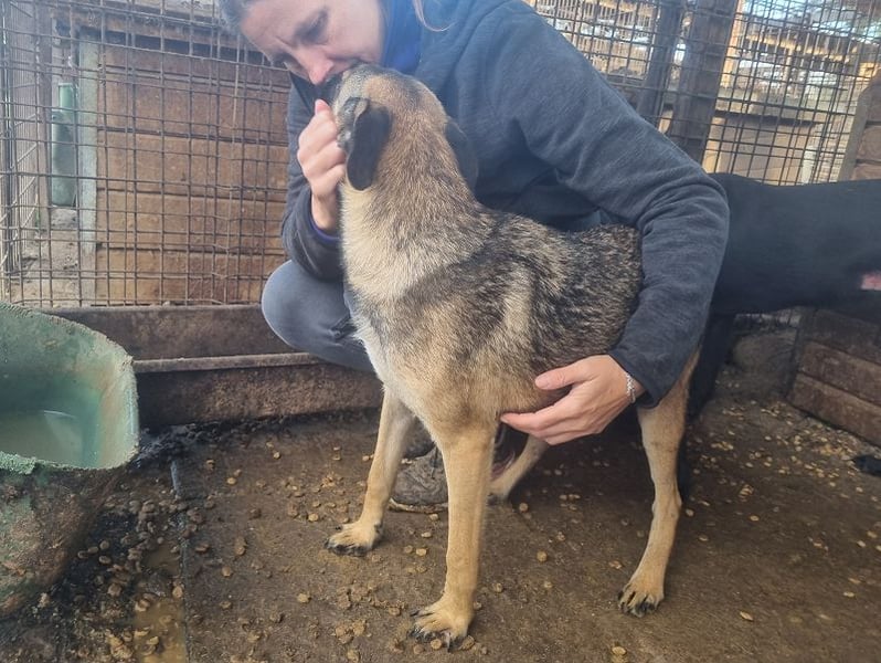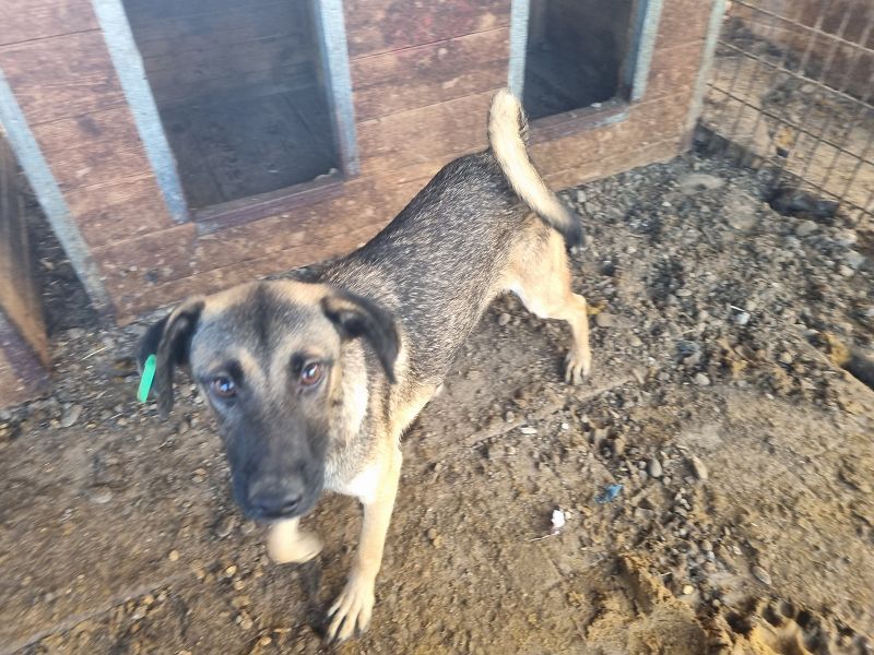 Terence ist ein lebensfroher junger Rüde mit einem wunderschönen braun-schwarzen Fell und einer charmanten Ringelrute! Mit etwa 1 Jahr und einer Schulterhöhe von 50 cm ist Terence ein lebhafter und neugieriger Junghund, der nur darauf wartet, die Welt zu entdecken. Bei unserem Besuch im Zwinger begrüßte Terence uns mit großer Freude und Neugier. Er war immer dabei und ließ sich überall anfassen – ein wahrer Kuschelbär! Seine freundliche und aufgeschlossene Art macht ihn zu einem tollen Begleiter, der sich gut mit anderen Hunden versteht und stets für eine positive Stimmung sorgt. Terence hat sich sehr über unsere Leckerchen gefreut und genoss die Streicheleinheiten in vollen Zügen. Diese Momente waren eine willkommene Abwechslung in seinem sonst so trostlosen Alltag. Wir wünschen uns, dass dieser liebe Rüde noch vor dem Winter ein warmes und liebevolles Zuhause findet, wo er die Geborgenheit und Zuneigung erleben kann, die er so sehr verdient.