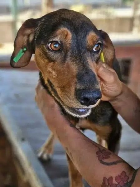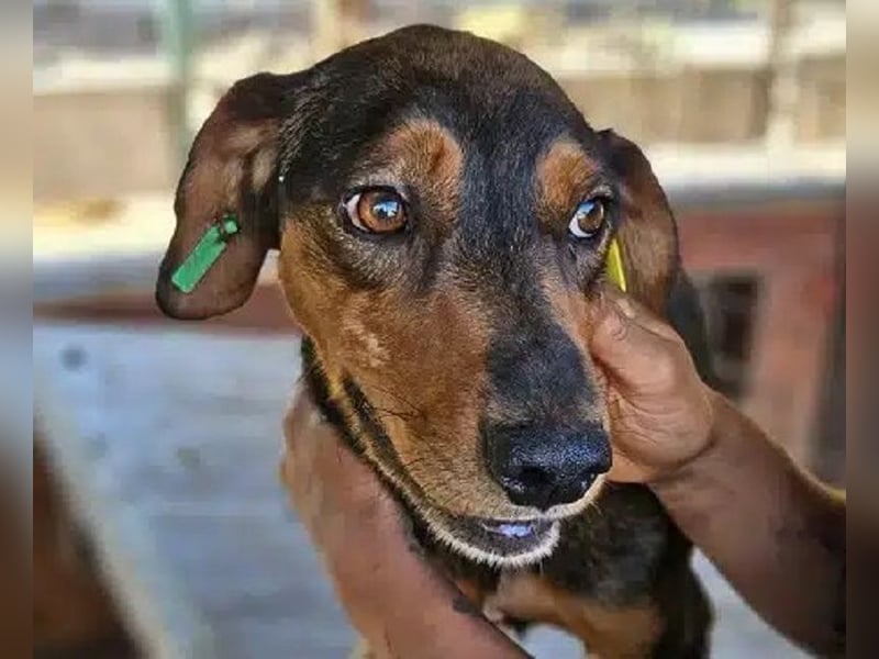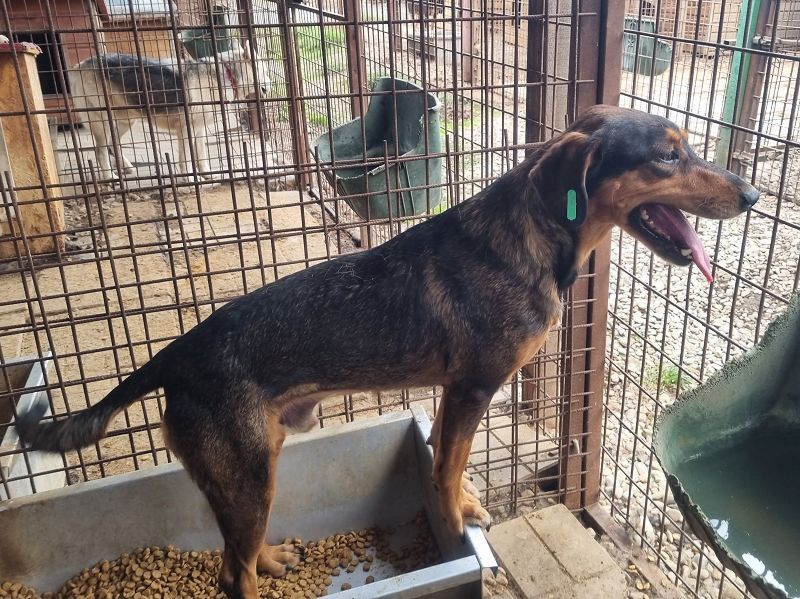 Der hübsche Garou ist ein echter Freund mit Herz und Energie. Er ist ein schwarz-rotbrauner Jungspund mit einer markanten schwarzen Zeichnung am Kopf, der am liebsten fröhlich um einen herum springt. So erging es uns, als wir Garou in seinem Zwinger besucht haben – ein lebhafter Rüde mit einer Schulterhöhe von etwa 50 cm und geschätzten 3 Jahren. Schon beim ersten Anblick strahlte er eine unglaubliche Lebensfreude aus, die sofort unser Herz berührte! Mit seinem sportlichen Körperbau sieht Garou wie ein echtes Energiebündel aus, und man merkt ihm an, dass er gerne aktiv ist. Es war herzzerreißend zu sehen, wie er sich über unseren Besuch freute. Kaum waren wir in der Nähe seines Zwingers, steckte er seine Schnauze durch das Gitter, als wollte er uns schon von Anfang an um den Finger wickeln. Und glaubt uns, das hat funktioniert! Der liebe Garou war stets in unserer Nähe und auf der Suche nach Leckerchen, die er mit Begeisterung entgegennahm. Es war, als könnte man seine Freude förmlich spüren – jeder Sprung und jedes Schwanzwedeln zeugten von seiner offenen und freundlichen Art. Wenn wir ihn streichelten, schloss er genüsslich die Augen und genoss jede Sekunde der Zuwendung. Leider hat er in seinem winzigen Zwinger überhaupt keinen Platz um seine Energie auszuleben. Er möchte rennen, spielen und die Welt entdecken, ist jedoch nur eingesperrt. Wer also einen aktiven, aufgeweckten und wunderschönen Hund sucht, der darauf wartet das große Abenteuer Leben, mit seinen Menschen zu teilen, findet mit Garou alles in einem.
