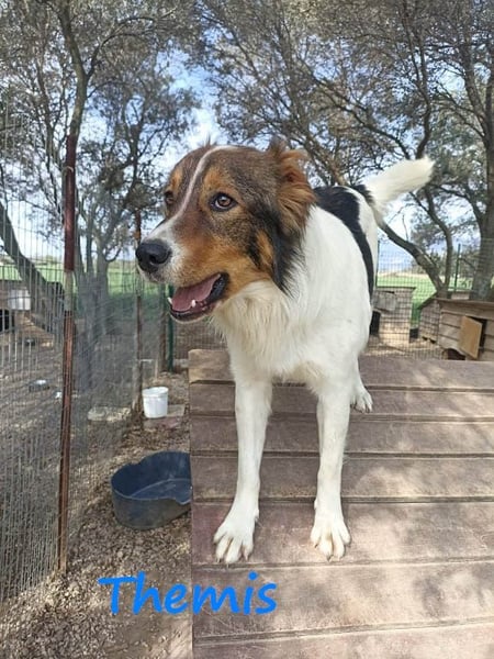 Themis lebte in einem Dorf und sein Leben war in Gefahr, weil die Leute ihn dort nicht haben wollten. Helfer brachten ihn ins Tierheim in Xanthi in Griechenland. Themis ist ein Freigeist, er liebt es, frei zu laufen und alles zu erkunden. Er liebt Menschen, die er kennt, und ist bei uns ein fröhlicher, freundlicher und verspielter Hund. Er passt besser zu einer freundlichen Hündin, aber auch mit Rüden und Welpen kommt er gut zurecht. Manchmal hat er das Gefühl, dass er sein Futter schützen muss, deshalb ist es besser, der einzige Hund im Haus zu sein oder mit einer sozialen und ruhigen Hündin zusammen zu sein. Er geht an der Leine und liebt es zu laufen und zu rennen. Themis möchte so gerne sein eigenes Zuhause zu finden.