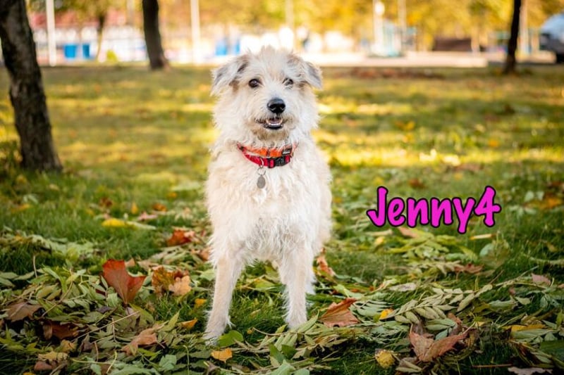 Jenny4 ist ein einzigartiger Hund - wir haben noch keinen Hund getroffen, der so sonnig, fröhlich, freundlich und lustig ist wie sie. Sie liebt alle Menschen auf der Welt, auch Fremde, von der ersten Sekunde an und jeder, der Jenny kennen gelernt hat, schließt auch sie sofort ins Herz. Jenny ist aufgeschlossen, anhänglich und vertrauensvoll. Sie ist ein umgänglicher, verspielter und energiegeladener Hund. Mit anderen Hunden versteht sie sich sehr gut, liebt aber ganz besonders die Aufmerksamkeit der Menschen. Sie kennt das Leben im Haus und in der Stadt und ist es auch schon gewohnt im Auto zu mitzufahren.