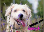 Jenny4 ist ein einzigartiger Hund - wir haben noch keinen Hund getroffen, der so sonnig, fröhlich, freundlich und lustig ist wie sie. Sie liebt alle Menschen auf der Welt, auch Fremde, von der ersten Sekunde an und jeder, der Jenny kennen gelernt hat, schließt auch sie sofort ins Herz. Jenny ist aufgeschlossen, anhänglich und vertrauensvoll. Sie ist ein umgänglicher, verspielter und energiegeladener Hund. Mit anderen Hunden versteht sie sich sehr gut, liebt aber ganz besonders die Aufmerksamkeit der Menschen. Sie kennt das Leben im Haus und in der Stadt und ist es auch schon gewohnt im Auto zu mitzufahren.