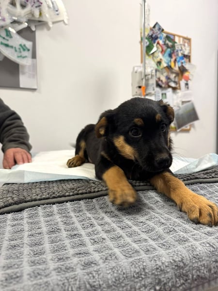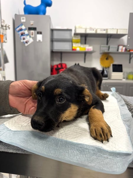 Hunde-Baby Pusha lebte zusammen mit sehr vielen Hunden in einem Industriegebiet in Rumänien. Die Hunde dort werden regelmäßig von Tierschützern gefüttert und versorgt.