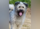 Der sechsjähriger Jimdo ist ein derzeit geschorener Hütehundmischling mit einer Schulterhöhe von 46 cm.