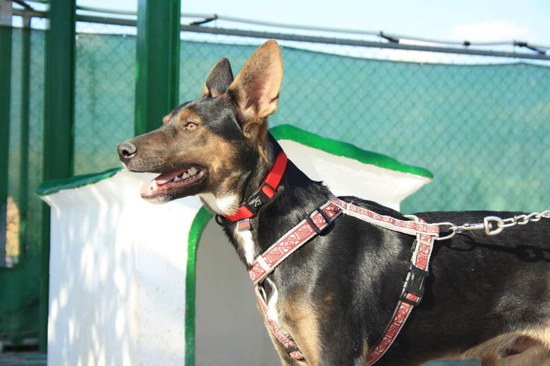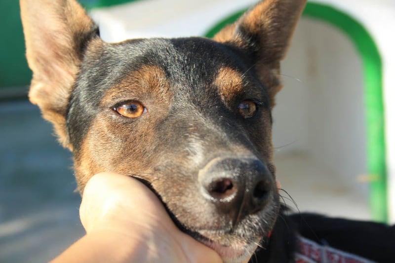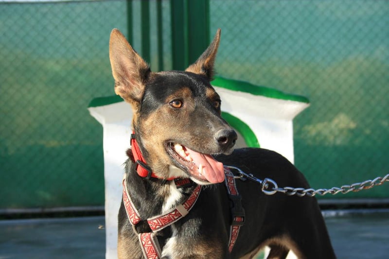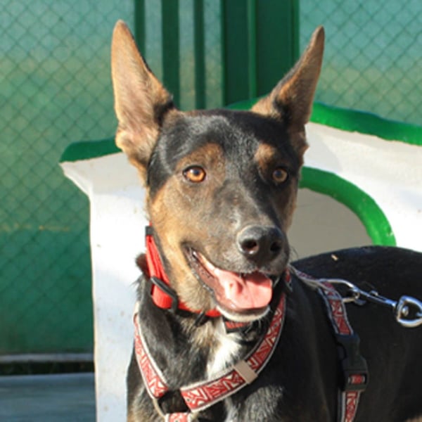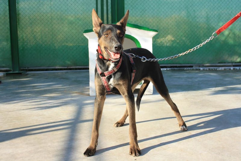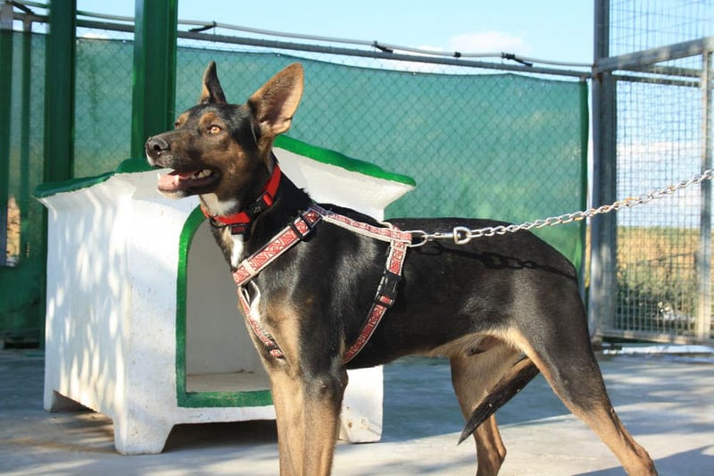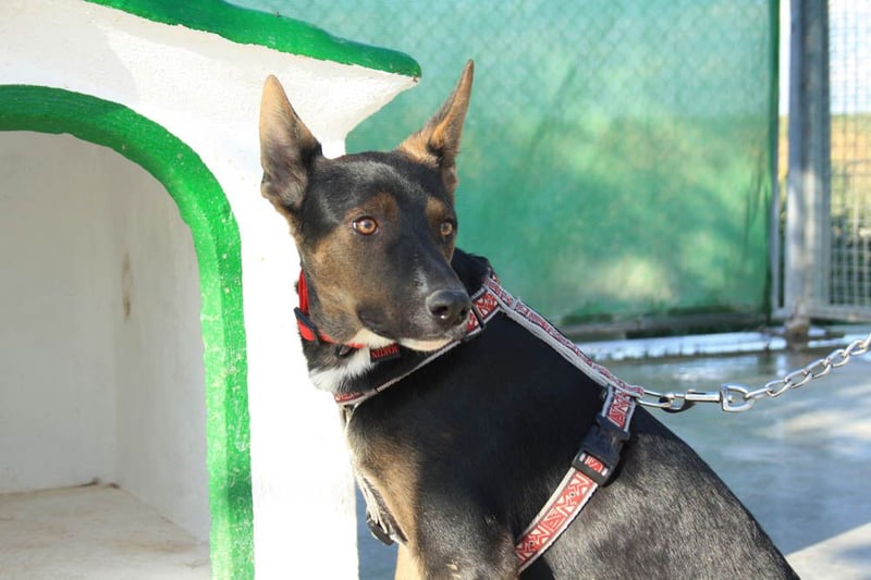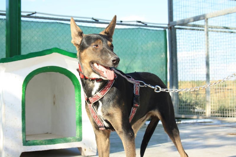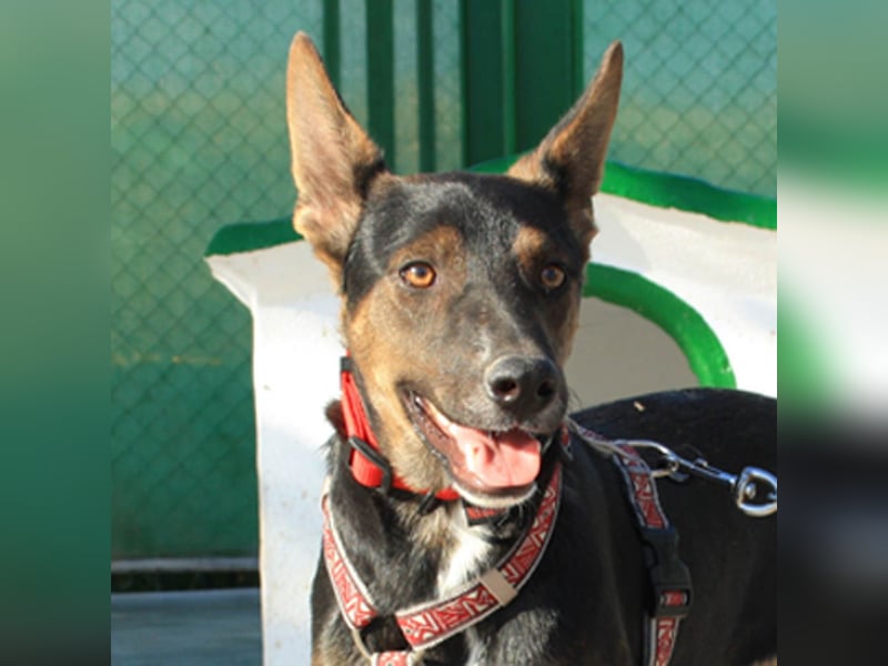 Donkor ist eine männliche Schönheit mit glänzendem schwarz-braunem Fell, weißem Fleck auf der Brust, sowie sehr großen Ohren. Ein bildschöner Rüde, der mit seinen Sinnen vermutlich alles wahrnimmt. Betrachtet man sein Bild genauer, sieht man seine Angespanntheit, seine eingeklemmte Rute zwischen seinen Hinterbeinen. Das sagt viel über Donkors Befinden aus, was nicht mehr viel mit seiner äußeren Anmut zu tun hat. Donkor ist ein Hund für einen erfahrenen Hundemenschen, der sich mit Hunden aus schwierigen Lebensverhältnissen auskennt, sich einfühlen kann und sehr viel Geduld und Liebe mitbringt. Donkor braucht eine echte, lebenslange Chance, um seine Ängste und Zurückhaltung ganz langsam und behutsam zu verlieren bzw. zu minimieren, um Vertrauen aufzubauen. Eine echte und langfristige Aufgabe für Mensch und Hund, die sie zu einem Team zusammenschweißen wird.