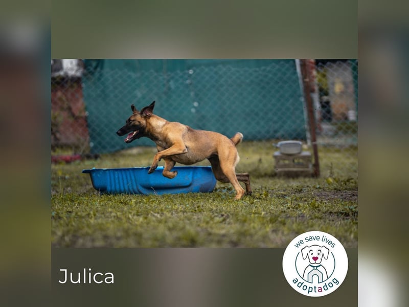 Julica ist ein wahres Energiebündel! Ihrer Rasse und ihrem Alter entsprechend hat sie richtig viel Power und braucht viel Bewegung, Arbeit und Training. Aber keine Sorge, sie lernt unglaublich schnell! In kürzester Zeit hat sie bereits das „Sitz“ gemeistert, balanciert mühelos über Agility-Hindernisse und ist eine tolle Kletterin. Und das Beste? Sie liebt es, mit Bällen zu spielen!