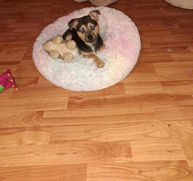 Charakter: kleine, verspielte, neugierige, aufgeweckte und freundliche Welpendame. Sie ist sehr pfiffig und wartet nur darauf, die Welt zu entdecken.