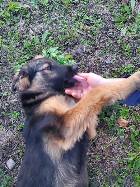 Charakter: liebe, freundliche, verspielte und sehr clevere Junghündin, die gerne kuschelt.