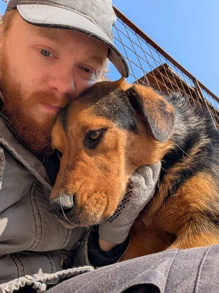 Mit seiner Bezugsperson, seinem Pfleger im Tierheim, ist er hübsche Bub sehr verbunden und zeigt ihm das bei jeder Gelegenheit.