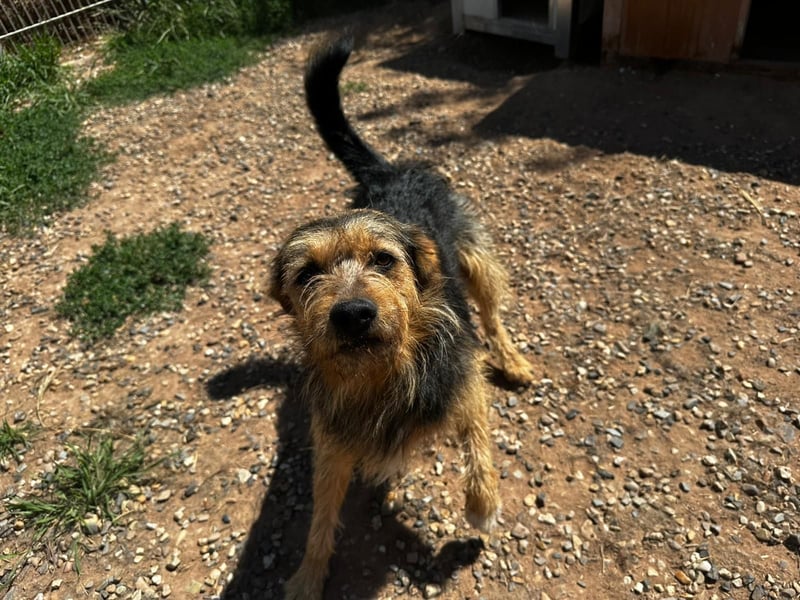 Tadeo ist ein Terriermix – und das merkt man: clever, neugierig, lebensfroh … und manchmal ein bisschen frech.