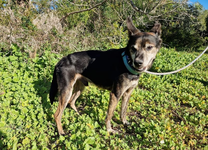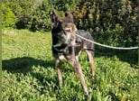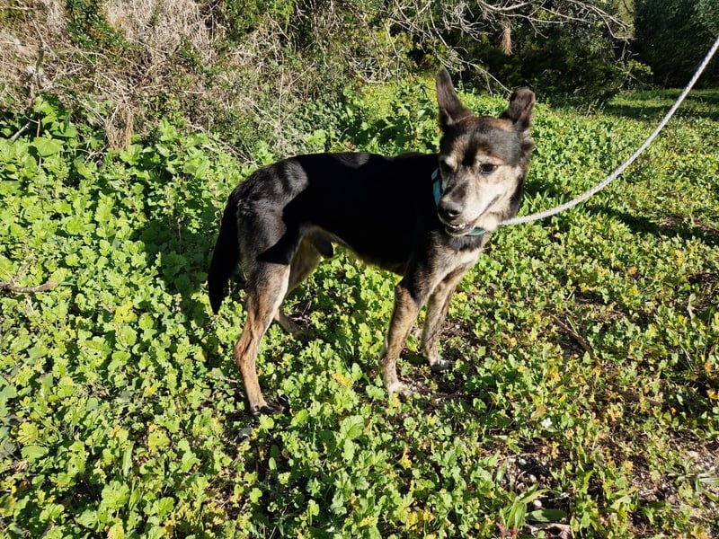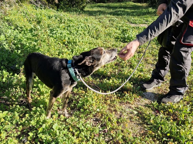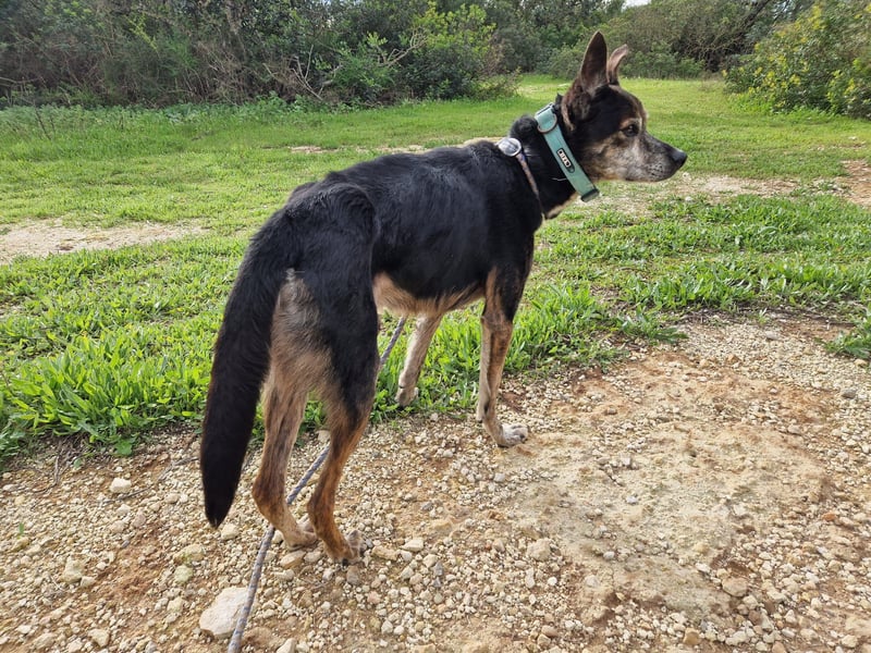 Schwer misshandelt, wahrscheinlich sogar mit einem alten, unbehandelten Bruch am Hinterbein, völlig unterernährt und panisch gegenüber Männern.