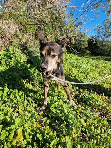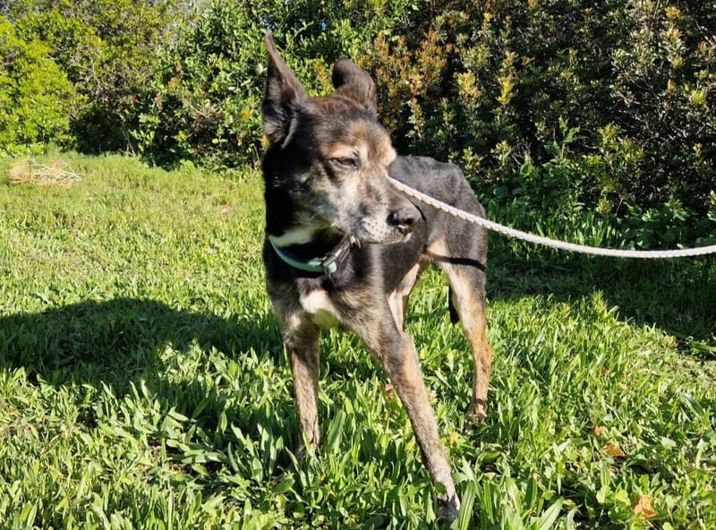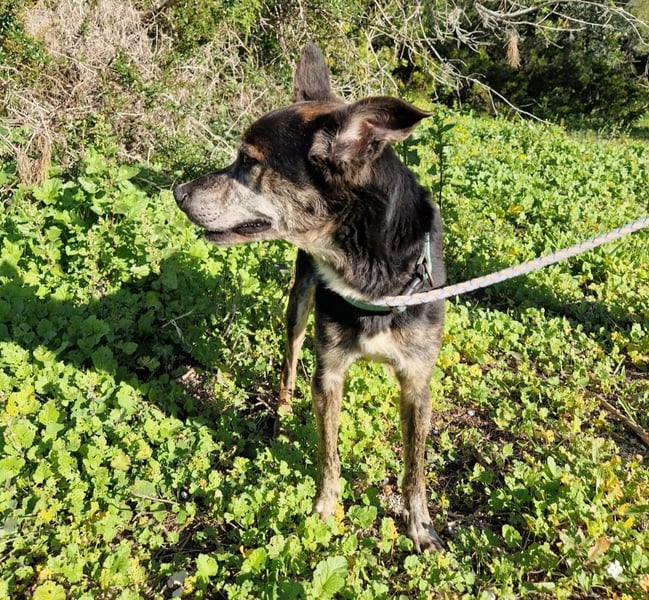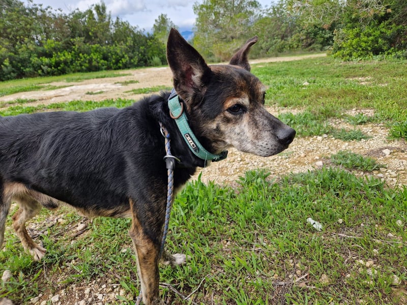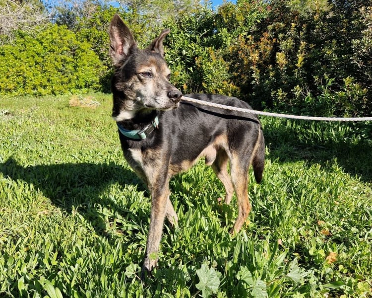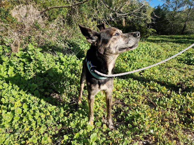 Lediglich sein Hinterbein zeigt beim Gang, dass der liebe Rüde schon viel durchleben musste.