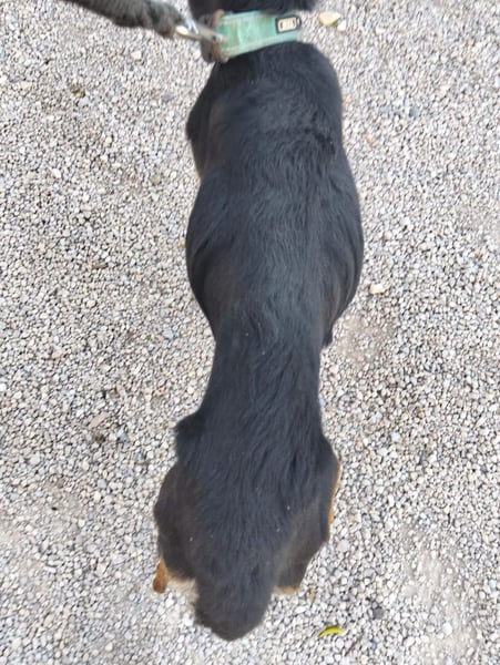 Sein ehemaliger Besitzer wurde glücklicher Weise von Tierschützern angezeigt, vermutlich gerade noch rechtzeitig.
