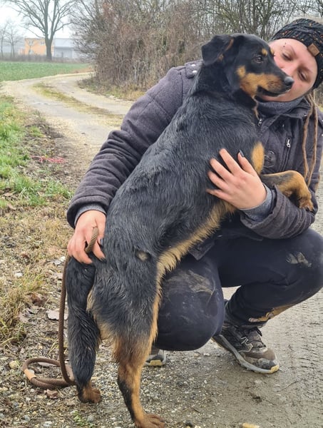 Kendo sucht die Nähe zum Menschen. Man sieht ihm diesen Wunsch deutlich an. Er kommt, bleibt stehen, sucht Kontakt – kann sich aber noch nicht ganz fallen lassen. Es ist kein echtes Angstverhalten, eher eine leise Unsicherheit eines jungen Hundes, dem die Chance fehlte, die Welt langsam und behütet kennenzulernen. Er braucht manchmal einen Moment länger, um zu vertrauen. Besonders genießt er eine ruhige, stille Nähe: sich anlehnen, dabei sein, bleiben dürfen. In diesen Augenblicken wird er ganz ruhig und man spürt, wie wichtig ihm allein diese Nähe ist. Wir sind sicher, dass er mit der Zeit auch verspielt werden wird – im Moment ist für ihn vor allem eines entscheidend: Sicherheit.