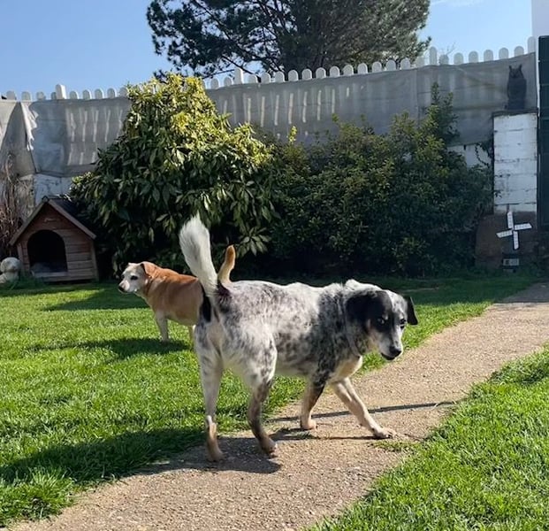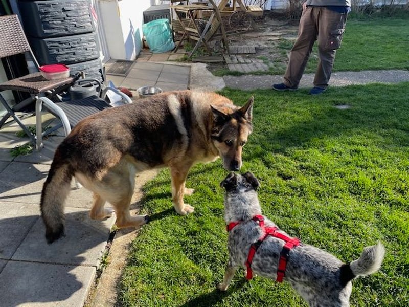 Dort wurde er bereits von großen und kleinen Hunden erwartet und versteht sich mit Allen gut.