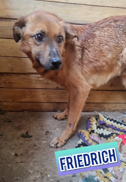 Friedrich ist am 03.01.2024 in unsere große Paws Familie aufgenommen worden, nachdem wir ihn aus Unirea gerettet haben. Friedrich lag dort als abgemagertes Häufchen Elend im Kennel und hätten wir ihn nicht dort rausgeholt, wäre er ein paar Tage später gestorben …. Es ist offensichtlich, dass er kaum Futter abbekommen hat in seinem Kennel zwischen den anderen Hunden, was dafürspricht, dass er stark dominiert, wurde von den anderen.