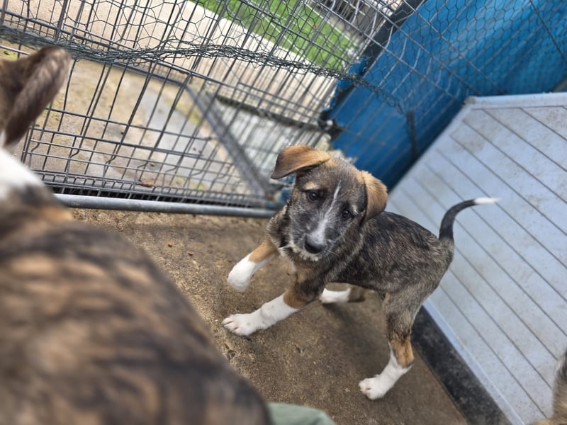 Gerd, Rüde, *ca. 04.07.2025, ca. kniehoch bis mittelgroß, sanft, zurückhaltend aber neugierig, freun