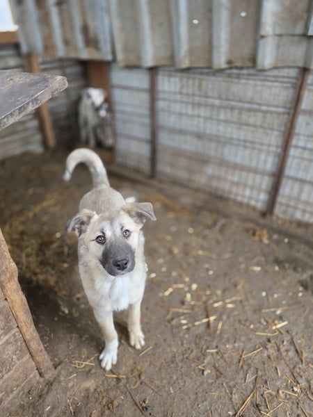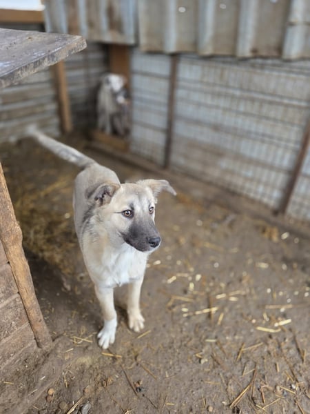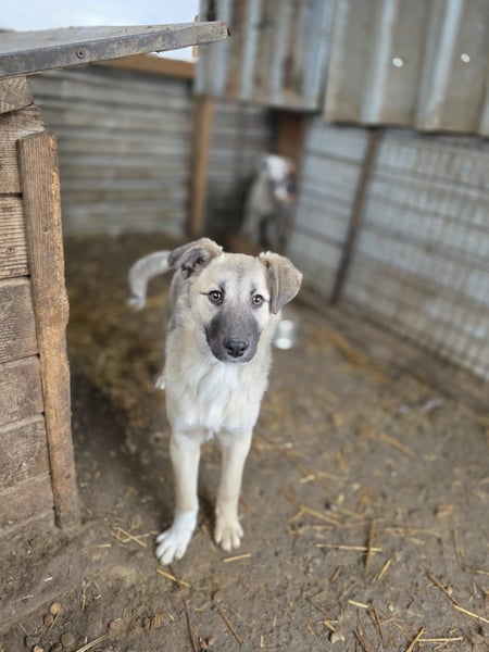Vicky, Hündin, * 01.08.2025, vermutlich kniehoch werdend, schüchtern, sanft, neugierig, verspielt, sozial. Lebt noch in Rumänien bei Paws of Love