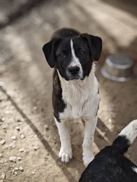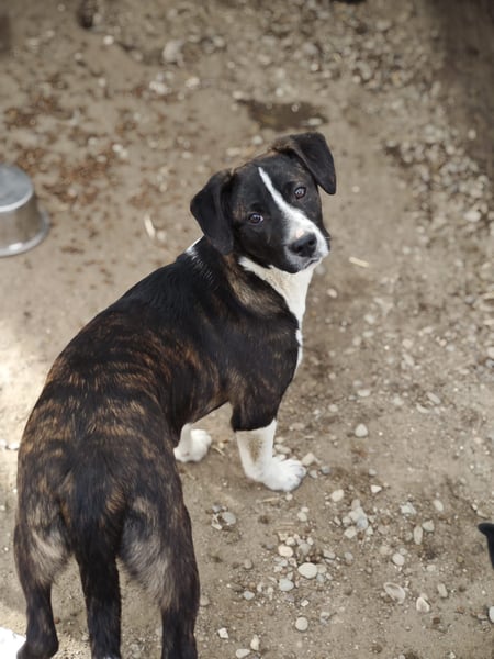 Die junge Hündin zeigt sich als freundliches, aufgeschlossenes und sehr menschenbezogenes Mädchen. Anfangs noch etwas vorsichtig, blüht sie von Tag zu Tag mehr auf und entdeckt immer neugieriger die Welt um sich herum.