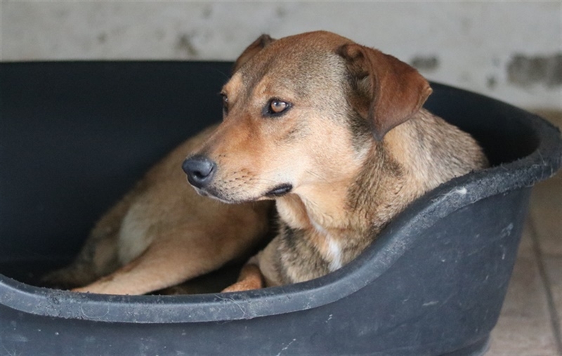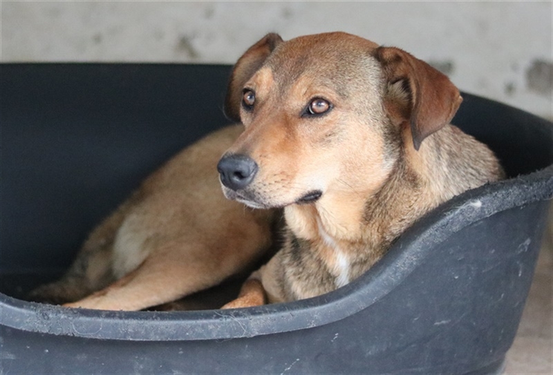 Unsere Anna ist eine ganz entzückende junge Hundedame. Sie hat viele verschiedene Brauntöne im Fell, schwarz umrandete Augen und witzige Ohren. Auf der Pflegestelle zeigt sie sich menschenbezogen, verspielt und verträglich mit Artgenossen. Auch Katzen hat sie dort bereits kennengelernt.