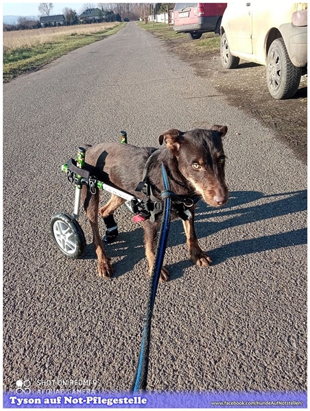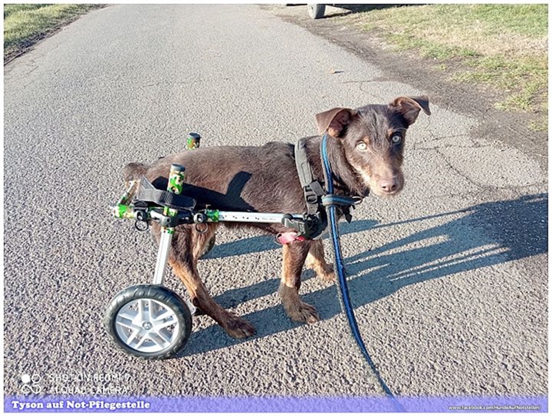 Entgegen der Prognose der Tierärzte, dass sämtliche Nerven an TYSON´s Hinterbeinchen bereits tot wären zeigt sich aktuell auf der ungarischen Not-Pflegestelle, dass wohl doch nicht alle Nerven tot sind und werden seine Hinterbeinchen durch seine Not-Pflegestelle bestmöglich mittels Physio trainiert, es gibt leichte Bewegungen an seinen Hinterbeinchen was uns unendlich glücklich macht.