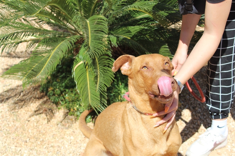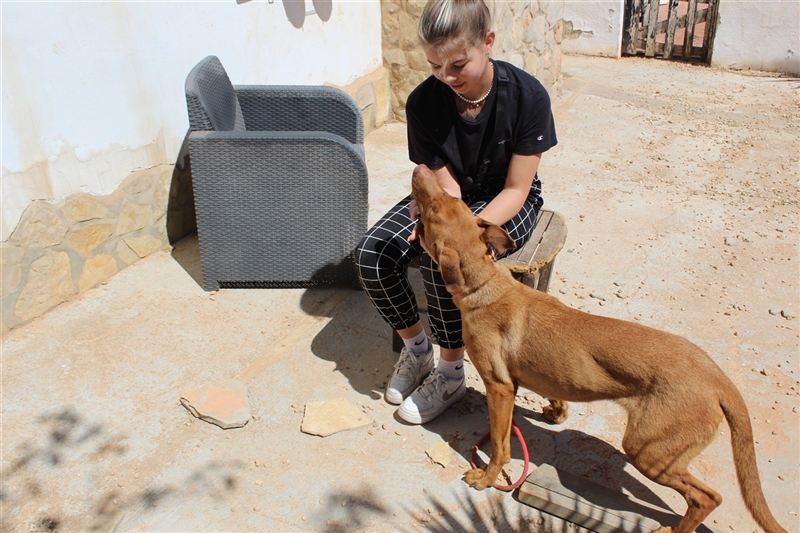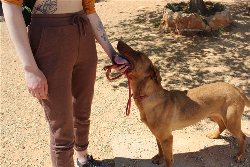 Diese wird Carla sicher sehr glücklich machen. Sie möchte den Menschen gefallen, ist offen gegenüber Fremden und freundlich zu anderen Tieren. Carla ist selbst nicht dominant, findet es aber auch nicht so toll, dominanten Hunden zu begegnen. Harmonie ist ihr deutlich lieber. Ihre Freude über bekannte Gesichter bringt sie mit vollem Körpereinsatz zum Ausdruck, da ihr Schwanz immer wedelt und sie einen mit Küsschen überhäufen möchte. Dabei kann es ab und zu noch zu Sprüngen kommen, sodass Kinder besser schon etwas größer und standfest sein sollten. Sie hat schon viel gelernt, dass man nicht immer nur Power geben muss, sondern auch Aufmerksamkeit bekommt wenn man mit allen vier Pfoten auf den Boden bleibt und nicht aufdringlich wird. Mit ihr wurde schon geübt, dass man sich zurücknehmen kann und auch mal ein bisschen auf sein Leckerlie warten kann.
