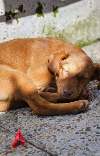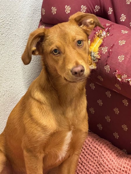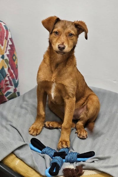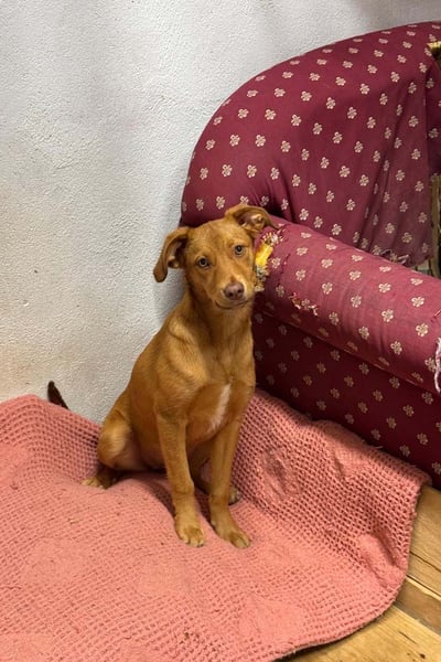 Die junge Hündin Siena wurde ganz allein auf der Straße gefunden. Wie der kleine Kinder kam auch sie zunächst ins städtische Tierheim. Doch dort sind die Plätze begrenzt, und so bat das Tierheim Adoromimos um Unterstützung.