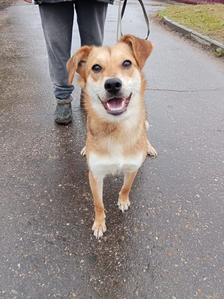 Mit ihrer Größe und ihrem Gewicht ist die Hundedame eine angenehm handliche Begleiterin. Bei Spaziergängen sucht sie immer wieder die Rückversicherung bei ihrer Bezugsperson, als würde sie fragen: „Bist du auch wirklich noch da?“