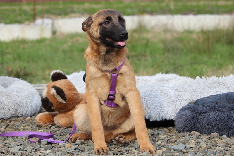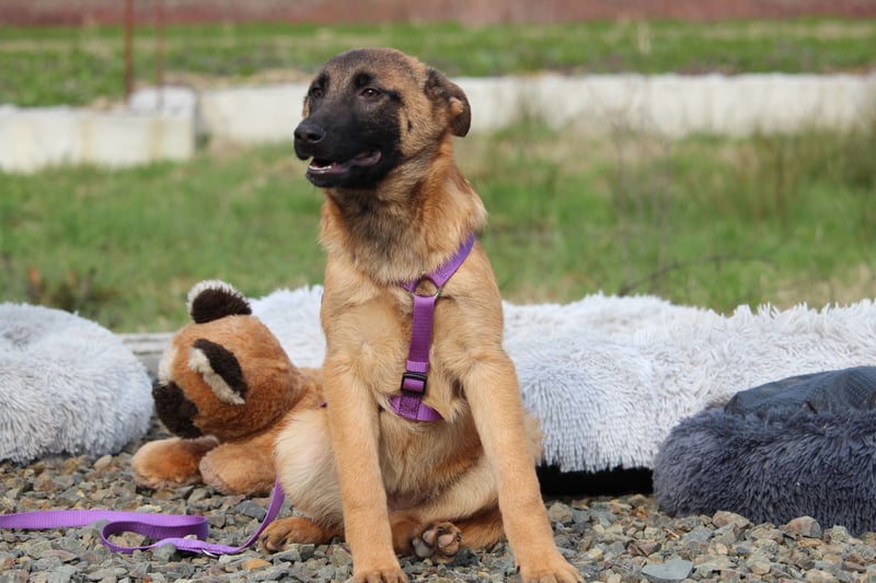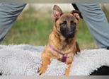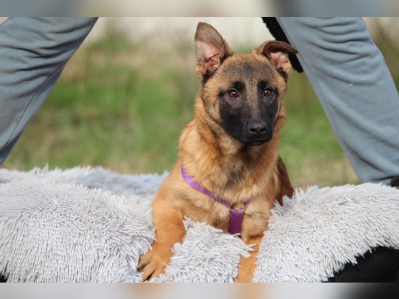 Liebe Zweibeiner! Ich heiße Kessy und bin laut Tierarzt im September 2025 geboren. Mit meinen aktuell 52 cm gehöre ich schon jetzt zu den größeren Schönheiten und werde auch noch ein ganzes Stück wachsen. Mein Leben bisher war, sagen wir mal nicht erfüllend. Ich habe in Bosnien gelebt und noch nicht viel Liebe erfahren dürfen. Fällt Euch meine wunderschöne Fellfarbe und die markante Fellzeichnung im Gesicht auf, die aussieht wie eine Maske? Noch schöner als mein hübsches Gesicht ist jedoch mein Inneres, mein sanftes und liebevolles, offenes Wesen. Mit meinen Artgenossen verstehe ich mich prächtig und ebenso gehe ich auf Euch Menschen fröhlich zu! Doch ich möchte auch ehrlich mit Euch sein, da ich eine große Hündin werde und auch meine Rasse ein wenig Hundeerfahrung fordert, suche ich nicht einfach irgendwen. Ich suche jemanden, der mich an die Pfote nimmt und mir einen klaren Weg vorgibt. Der mich liebevoll und konsequent begleitet und mit einer klaren Führung das Ruder in die Hand nimmt. Wenn in Deiner Familie Kinder leben, freue ich mich darüber. Dennoch sollen sie unbedingt schon älter sein und den Umgang mit Hunden kennen, damit sie verständnisvoll und geduldig mit mir sind.