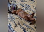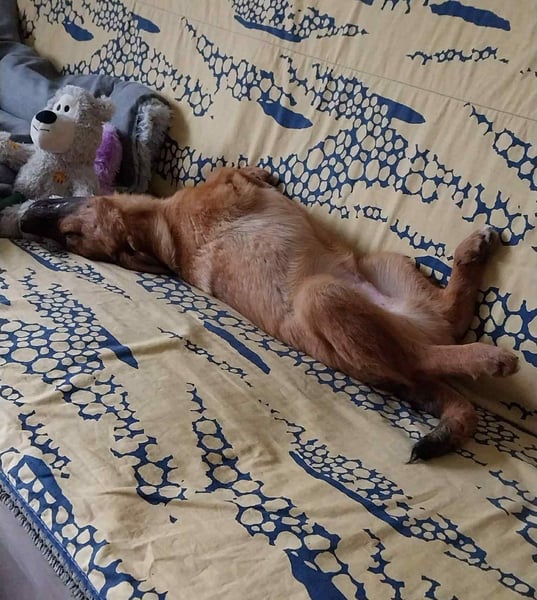 Auf der Pflegestelle kann er sich ausgelassen mit sich selbst beschäftigen wenn er im Garten mit seinem Spielzeug herumtollt. Aber auch wenn Hundekumpel zu Besuch kommen freut er sich.