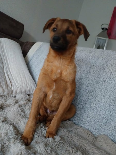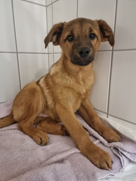 Nun wird auf der Pflegestelle schon fleißig alles trainiert was ein junger Hund so lernen muss. Wir denken das Findus erwachsen ca. 50 cm Schulterhöhe haben wird.