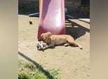Peach zeigt sich sehr anhänglich, vor allem den älteren Rüden der Familie liebt sie und richtet sich auch schon sehr nach Ihrer Bezugsperson.