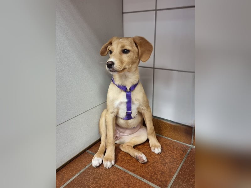 Peach ist einfach nett. Zu Beginn ist sie zunächst etwas zurückhaltend, taut aber schnell auf, ist welpentypisch verspielt, neugierig und freut sich sehr über Menschenkontakt und Streicheleinheiten.