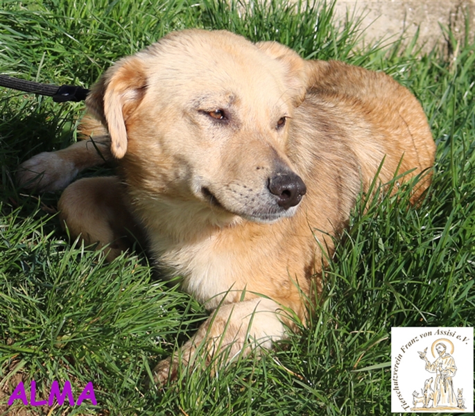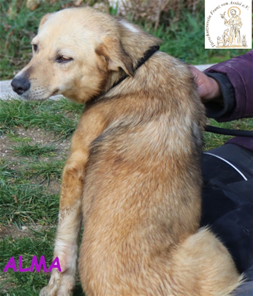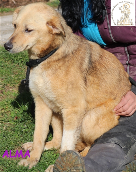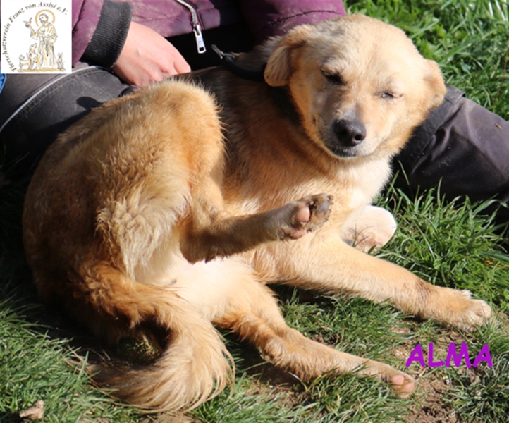 Alma versteht sich prima mit ihren Hundekumpels und hat keine Probleme mit Katzen. Auch Menschen gegenüber ist sie nicht ängstlich und läßt sich gerne streicheln. Altersbedingt hat sie noch genug Energie, um viele neue Abenteuer und andere tolle Dinge zu erleben. Ihre Familie sollte Spaß an der Hundeerziehung und an der Beschäftigung mit ihr haben, denn Alma muss noch vieles lernen und hat einiges nachzuholen.