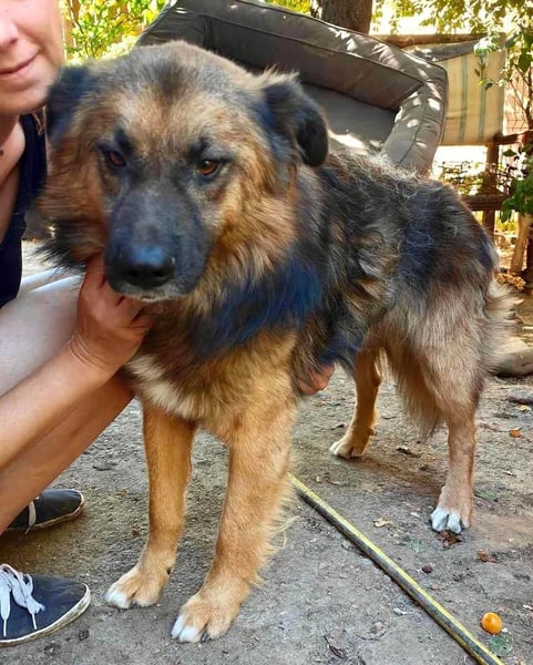 Annabella wurde im Januar 2024 in größter Misere gefunden. Gefangen in einer Drahtschlinge, die sich tief in ihre Leiste geschnitten hatte, war die heute dreijährige Hündin am Ende ihrer Kräfte. Dehydriert, abgemagert und schwach hatte sie den Kampf gegen die Drahtschlingenfalle verloren. Es war purer Glücksfall, dass Annabella gerade noch rechtzeitig gefunden worden war.