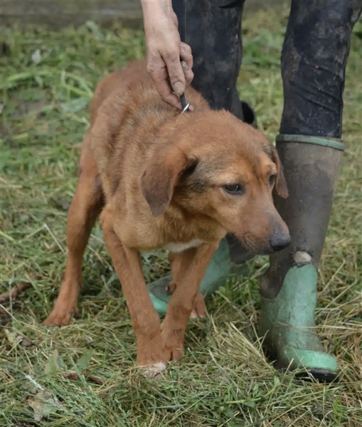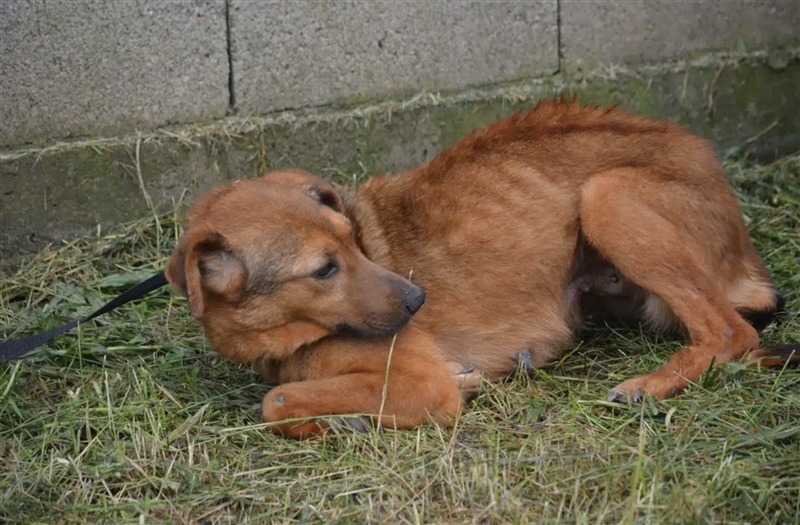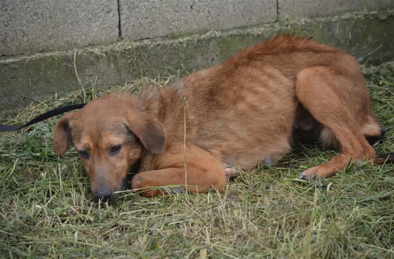 Wie man auf den Bildern sehen kann, ist die Hündin nur noch Haut und Knochen. Sie muss schon Jahre in einem engen Zwinger ohne Auslauf verbringen. In Serien hat sie keine Chance auf eine Vermittlung.