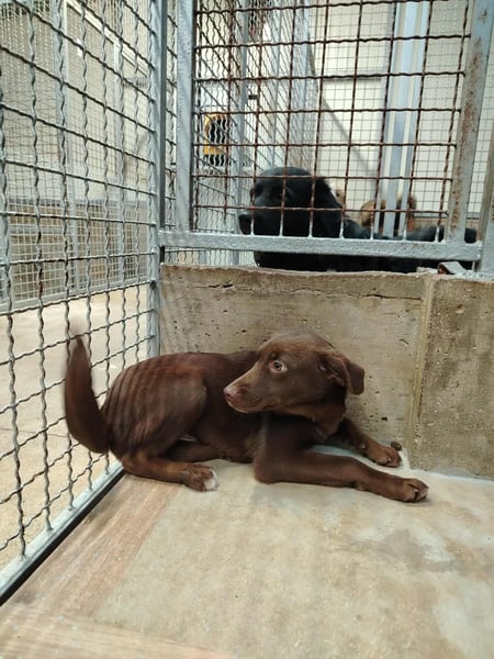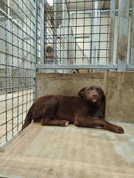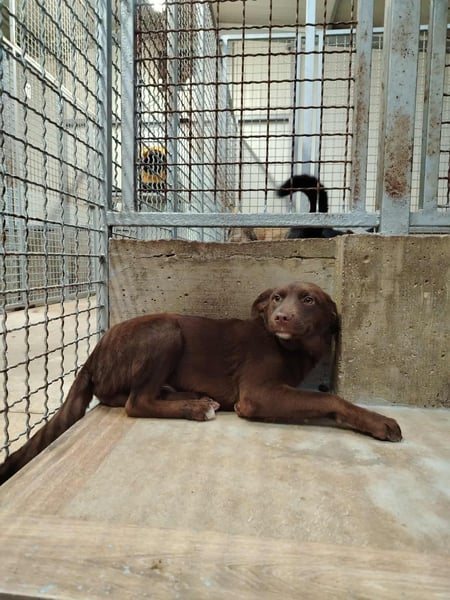 Der kleine Welpen Bub fühlt sich sichtlich unwohl im Shelter, alles ist viel zu laut und eng, die vielen Hunde machen ihm Angst und er liegt nur in der Ecke, damit ihm nichts passiert, am liebsten würde er sich unsichtbar machen. Zu uns Menschen ist er freundlich und versucht auch die Streicheleinheiten zu genießen. Er wünscht sich nichts mehr als ein sicheres Zuhause mit einem kuscheligen Körbchen und Menschen, die ihn lieben. Mit den anderen Hunden kommt er gut zurecht.