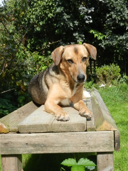 Sie ist ausgesprochen verschmust und bekommt in ihrer derzeitigen Mehrhundehaltung ständig zu wenig Streicheleinheiten, so dass sie diese auch schon mal mit hartnäckigen Nasenstübern und Pföteln einfordern muss.