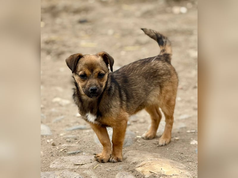 Emely steckt voller Lebensfreude. Sie spielt gerne und ist immer neugierig darauf, Neues kennenzulernen. Gleichzeitig orientiert sie sich stark an den Menschen und sucht ihre Nähe.