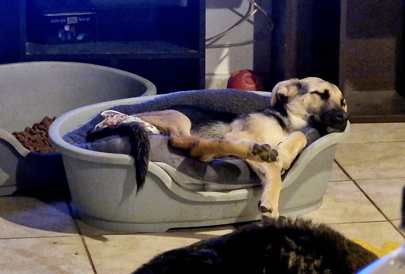 Heute geht es um einen unserer Herzenshunde: unsere junge Hündin Charlotte. Sie wurde als Welpe angefahren und am Straßenrand liegen gelassen. Wir brachten sie in die Tierklinik nach Bukarest, wo sie operiert wurde. Charlotte kann wieder laufen, wird sich allerdings voraussichtlich nie wie ein normaler Hund bewegen können. Nichtsdestotrotz düst sie mit den anderen Hunden durch den Garten, ist verspielt und lebensfroh. Sie bleibt vermutlich dauerhaft Kot- und Urininkontinent.