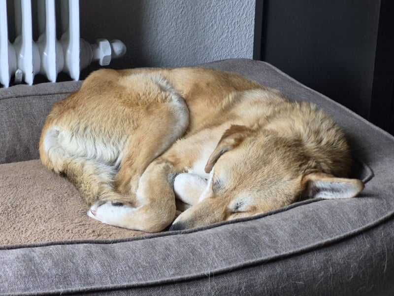 Sie zeigt sich als sanfte und liebevolle Hündin, die Streicheleinheiten sehr genießt. Wenn man aufhört, rutscht sie leise ein Stück näher und stupst einen ganz zart mit der Nase an, als würde sie vorsichtig fragen, ob man nicht weitermachen möchte.