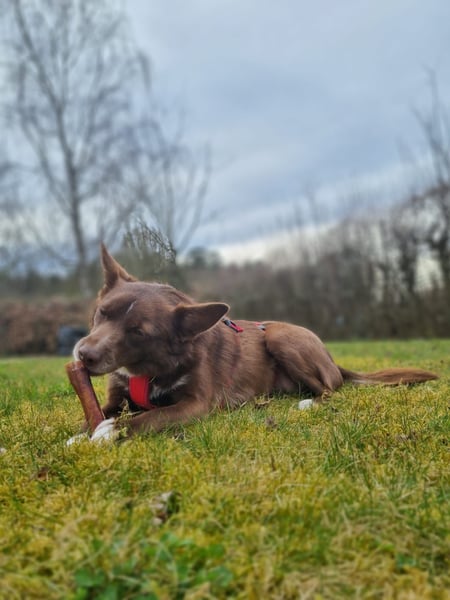 Junghundtypisches Verhalten: neugierig, verspielt, interessiert an Alltagsgegenständen