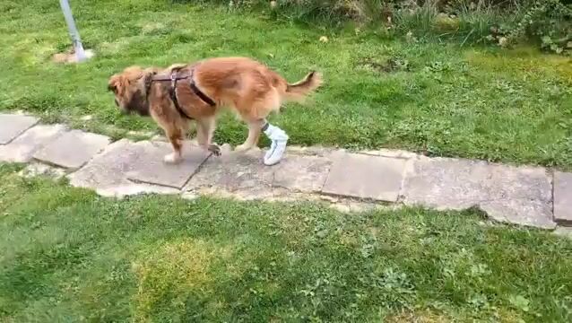 Über Jahre lebte er mit zwei sehr schmerzhaften Verletzungen – einer am linken Hinterbein und einer ausgerenkten Hüfte. Niemand versteht wie er damit überhaupt laufen kann. Am 26. März wurde sein Bein operiert: Das Sprunggelenk musste versteift werden, um ihm Stabilität zu geben. Die Operation ist gut verlaufen, Fäden sind gezogen, und der große Gips ist inzwischen einer leichteren Schiene gewichen. Schritt für Schritt genießt er das Leben.