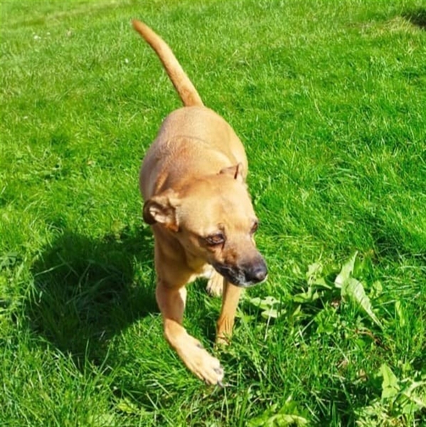 Die menschenbezogene und treue Hündin Mena wünscht sich sehnlichst wieder mehr Zeit und Zuwendung in ihrem Leben. Mit ihren ca. 8 Jahren ist sie noch voller Energie, liebt es, mit ihren Menschen im Garten zu spielen und freut sich auf ausgedehnte Spaziergänge, die sie aktuell sehr vermisst.