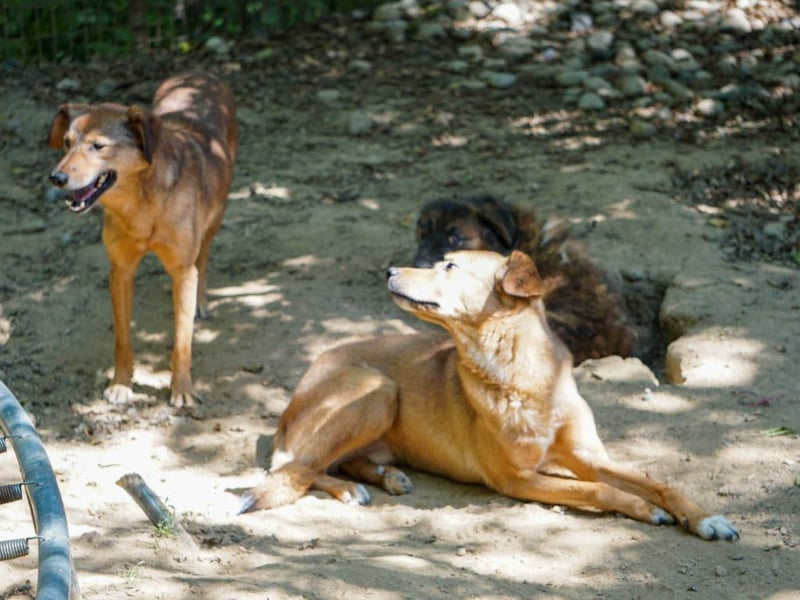 Auch wenn meine Welpenzeit echt verkorkst war, habe ich nie den Lebensmut und-willen verloren. Tagaus, tagein drehe ich hier im Auslauf meine Runden, liege friedlich in der Sonne und beobachte das Treiben um mich herum. Ich bin zwar ein sehr vorsichtiger Kerl, aber auch ein sehr neugieriger! Wenn fremde Menschen uns besuchen, beschnuppere ich sie interessiert, sie dürfen mich sogar streicheln! Okay, richtig geheuer ist mir das nicht immer, die mir vertrauten Menschen, die sich jeden Tag um uns kümmern, sind mir etwas lieber. Doch auch wenn ich wohl nie der Hund sein werde, der jeden Menschen toll findet und unbedingt von allen gestreichelt werden will, freue ich mich, wenn auch ich hin und wieder etwas Aufmerksamkeit und Liebe abbekomme. Auch Freunde habe ich hier hin und wieder gefunden – doch im Gegensatz zu mir ziehen die alle nach einiger Zeit weiter. Zu ihren Familien. Um endlich glücklich zu sein. Nur ich bleibe immer wieder zurück …